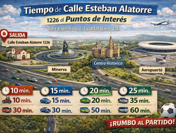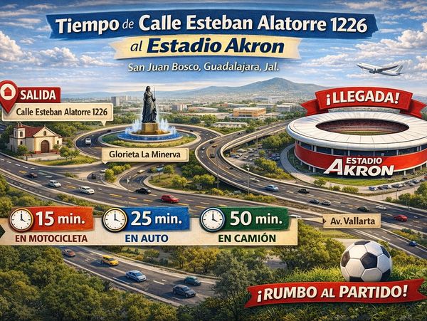 Desde Calle Esteban Alatorre 1226 (San Juan Bosco) llegas al Estadio Akron súper rápido.